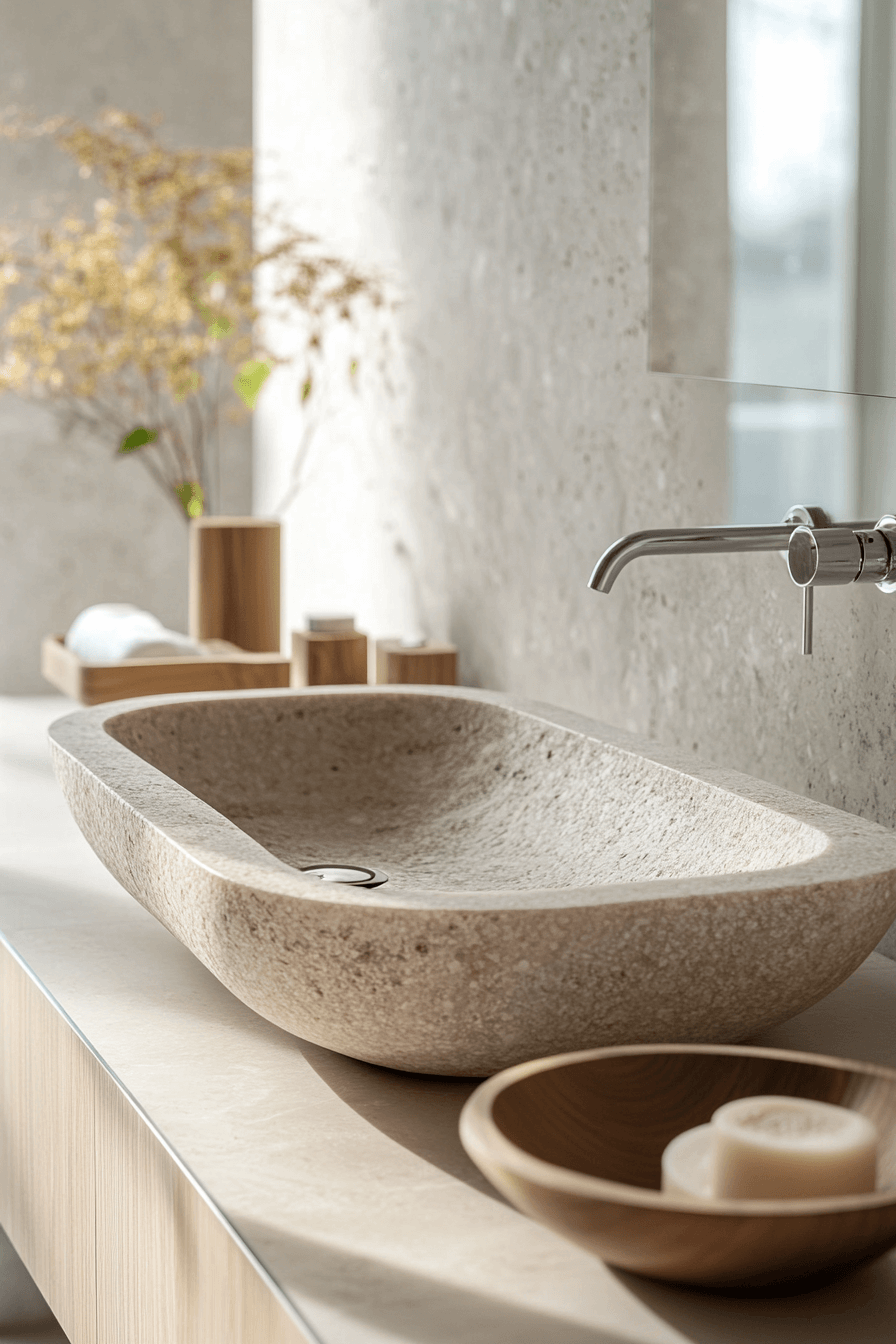 Choose large format tiles for a sleek, contemporary bathroom tile design idea. They reduce the need for grout, making maintenance easier and giving a more open feel. These tiles can adapt to any style, offering a neat, modern look.