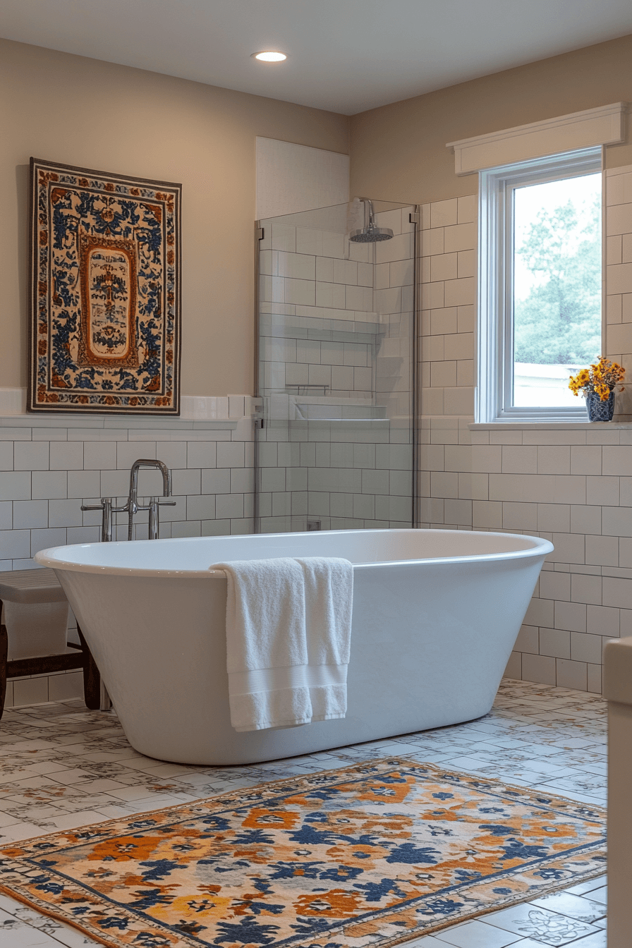 Bright colors and bold patterns bring energy to a vintage modern master bath, blending retro flair with sleek modern designs. This vibrant space is perfect for those who love bold, fun style.