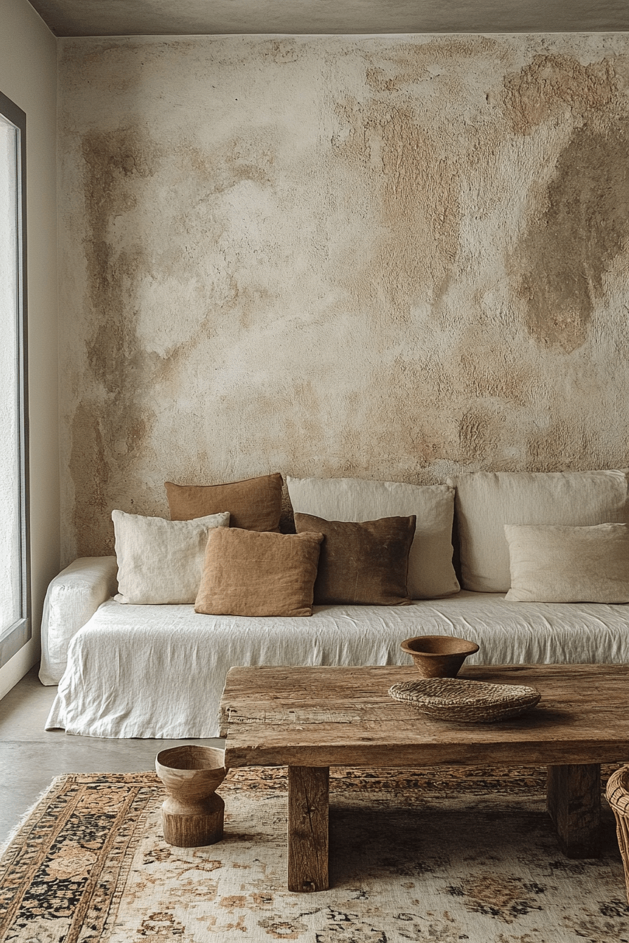 Incorporate exposed brick, uneven plaster, or aged paint finishes to highlight the passage of time. These wall textures embrace wabi sabi apartment ideas, adding layers of history and character to your space. Instead of smooth perfection, let the beauty of raw materials shine through.